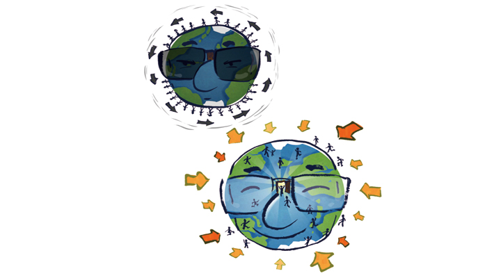 門的兩邊, 一邊寫「拉」, 一邊寫「推」; 凡夫的習性, 喜歡的就拉過來(貪), 不喜歡的就推出去(瞋)。 操控貪與瞋, 背後的魔手就是「痴」。