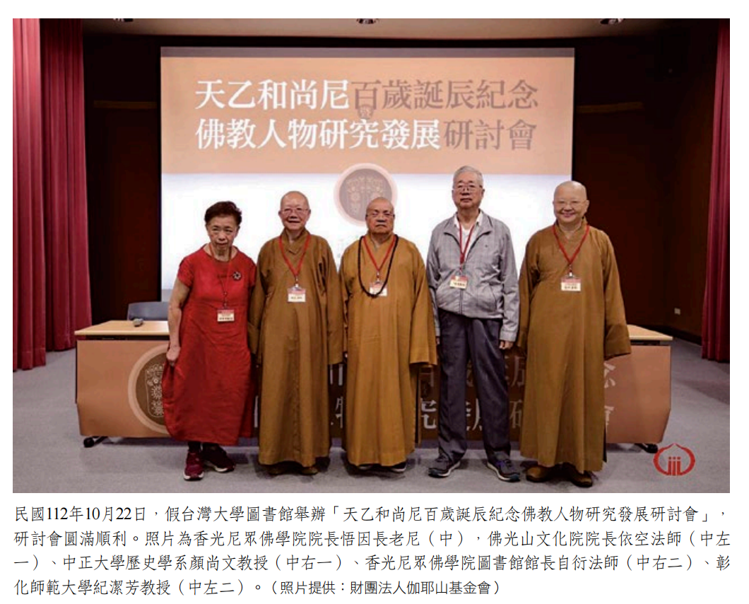 【教訊采摭】天乙和尚尼百歲誕辰紀念暨 佛教人物研究發展研討會 圓滿舉辦
