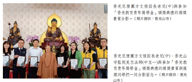 香光山寺方丈悟因長老尼表示,這份獎學金不僅是經濟支持,更是一盞照亮青年前路的心燈。她強調:「無論背景如何,只要努力、善良,就值得被看見與支持。」這份獎學金象徵信任與陪伴,傳遞社會對下一代的溫暖關懷。