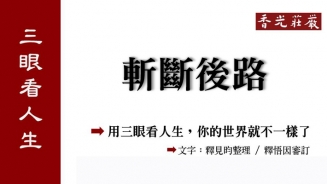 2014.05.03 34 30 33 28 26 27 31 29 24 23 22 21 20 17 19 18 32 25 16 15 14 13 18 【三眼看人生】為母則強 文字:釋見昀整理;釋悟因審訂 用三眼看人生,你的世界就不一樣了。 中國民間神話的二郎神額頭有第三隻眼,佛教的教主釋迦牟尼佛有五眼,肉眼、天眼、慧眼、法眼、佛眼。 從這些不同的眼,看到了不同層次的世界。 悟因法師受學於當代獨步楞嚴、傳臨濟法脈的白公老人座下,常能以不一樣的眼光看世界。因此採擷師與弟子、時人的對話作成語錄,名為「三眼看人生」。 三眼,指跳脫自己和他人的眼光來看事情。 文中的「師」指悟因法師。 Facebook 相關影音 2013.07.27 智慧法語 【三眼看人生】誰比較忙碌 2013.10.05 智慧法語 【三眼看人生】斬斷後路 2014.04.26 智慧法語 【偈頌之美】禪詩-來時無跡去無蹤