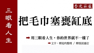 2016.01.09 1 2 3 4 5 6 7 8 9 10 11 12 15 13 14 25 29 30 32 37 39 40 16 4 33 27 3 43 42 46 【維摩詰的智慧】文殊出馬 視讀經典(二) 維摩詰的智慧 文字:釋見沄、宋滌姬 / 插畫:莊孝先 香光莊嚴雜誌112期(民國102年3月出刊,民國74年2月創刊) 文殊出馬 幸好文殊菩薩願意接下這個「不可能的任務」,因此而有〈文殊師利問疾品〉。 龐大的探病團隨文殊菩薩到達維摩詰家,文殊帶來佛陀的問候,並詢問維摩詰病因,以及治療方法。維摩詰回答:「以一切眾生病,是故我病;若一切眾生病滅,則我病滅。菩薩病者,以大悲起。」菩薩的病完全是由大悲心而發,何憂何苦! [第112期]維摩詰的智慧_視讀經典(二) 文章閱覽 http://www.gayamagazine.org/periodical/detail/153 Facebook 相關影音 2014.05.24 智慧法語 【三眼看人生】廚房的天下 2013.06.22 智慧法語 【三眼看人生】把毛巾塞甕缸底 2013.10.30 智慧法語 【偈頌之美】禪詩-蠅子透窗偈