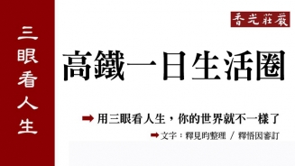 2016.01.16 1 2 3 4 5 6 7 8 9 10 11 12 15 13 14 25 29 30 32 37 39 40 16 4 33 27 3 43 42 46 【維摩詰的智慧】飛越思惟邊界 文字:釋見沄、宋滌姬 / 插畫:莊孝先 香光莊嚴雜誌112期(民國102年3月出刊,民國74年2月創刊) 飛越思惟邊界 維摩詰善盡待客之道,從須彌相世界借來三萬二千個高座,全部擺進自己的斗室中,宣示小大相容、久暫互攝等不可思議解脫的力用。維摩詰還描述菩薩超乎想像的神通境界,令大迦葉等聲聞弟子大呼驚嘆! [第112期]維摩詰的智慧_視讀經典(二) 文章閱覽 http://www.gayamagazine.org/periodical/detail/153 Facebook 相關影音 2014.03.15 智慧法語 【三眼看人生】正語 2013.09.14 智慧法語 【三眼看人生】生氣 2013.07.13 智慧法語 【三眼看人生】高鐵一日生活圈