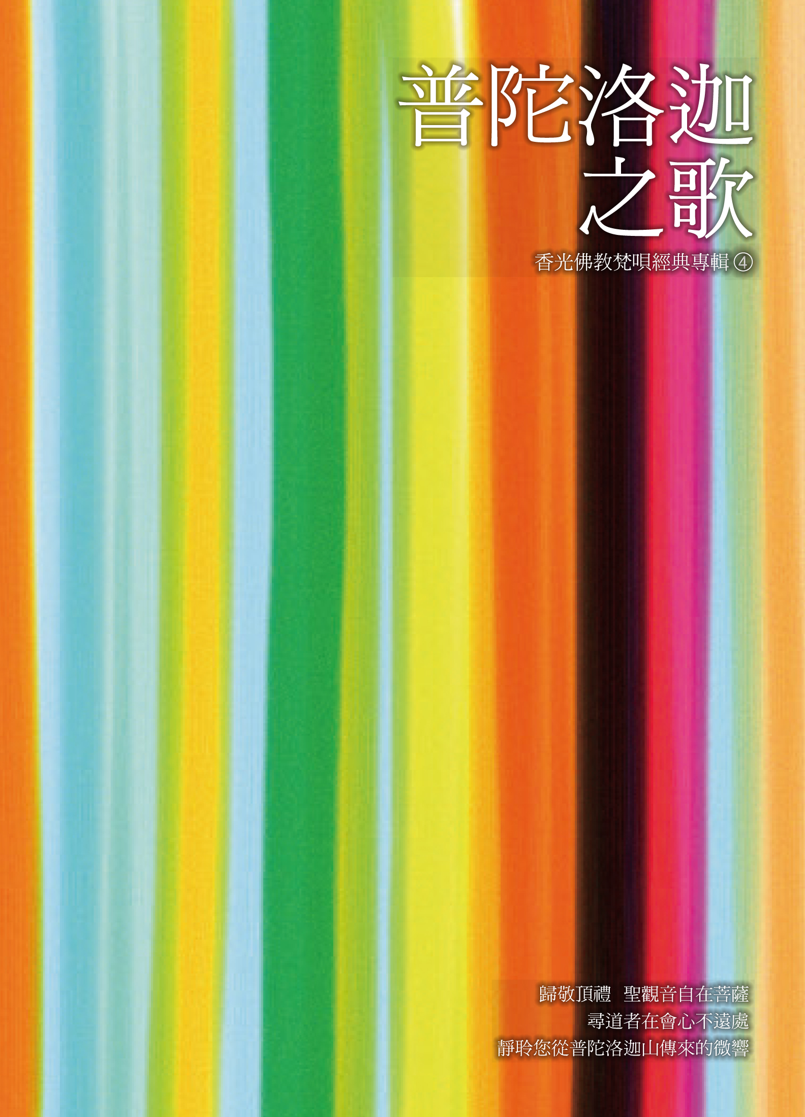105 期 X出刊日期 2011 06 20 普陀洛迦之歌:香光佛教梵唄經典專輯4 PDF 下載 相傳普陀洛迦山是觀世音道場,那是海中一處眾寶所成的清淨之地,獨立峰頂,虔誠稱念觀世音菩薩,您將會在無限的慈悲流光中,聽見生命幸福的海潮音。 現實人生裡,如何聽見幸福? 向前走時,若你心中對菩薩的那份依靠,還在,知道有人在你背後撐持著,告訴你「不用害怕」,這就是一種幸福! 這張專輯的產生 ,是為了回應這個快速變動的時代,希望您和我們一起念誦或聆聽觀音菩薩的心聲時,感受到菩薩普施無畏的那份心安,更能與菩薩的願相呼應,自己就是帶給人支持的那股力量,自己就是給予人幸福的那個人。 其他 - 出版序 若欲聽見 即得聽見 聽見觀音的慈悲 其他 - 曲目及梵唱 普陀洛迦之歌曲目